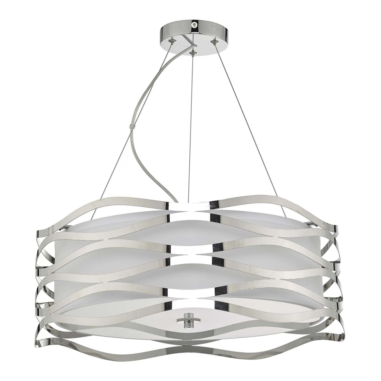 A Contemporary Stainless Steel Pendant With Fabric Inner And Glass Diffuser
