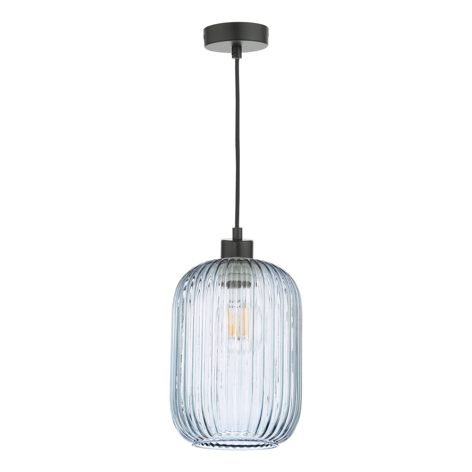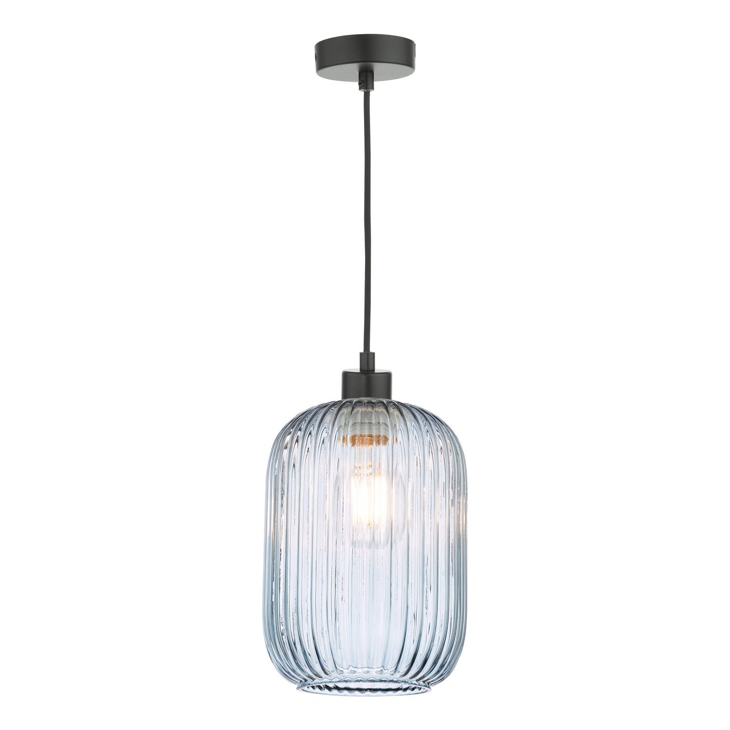 Sawyer Pendant Matt Black and Blue Ribbed Glass