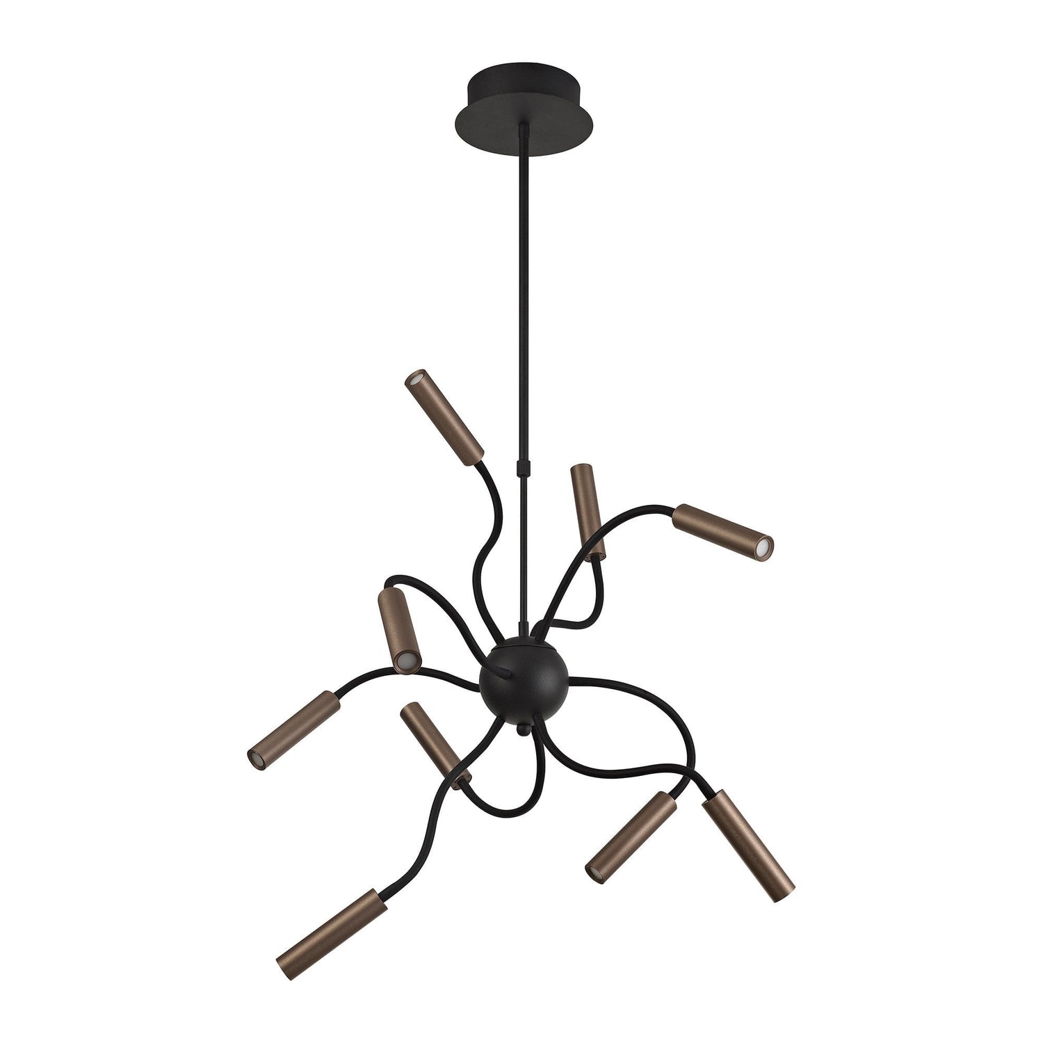 Sputnik Pendant Light with Adjustable Arms, 9 x 4W Dimmable LEDs, Black and Satin Copper Finish, 3000K Warm White, 3-Year Warranty