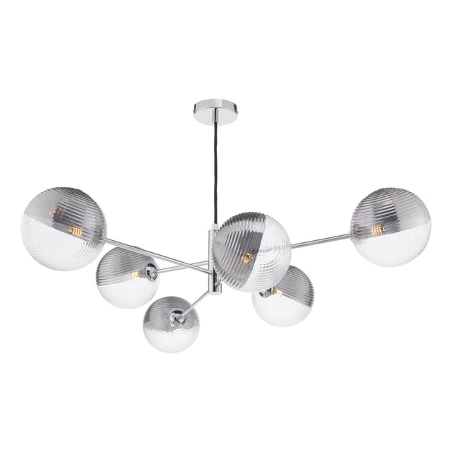 Vignette 6 Light Pendant Polished Chrome With Smoked/Clear Ribbed Glass