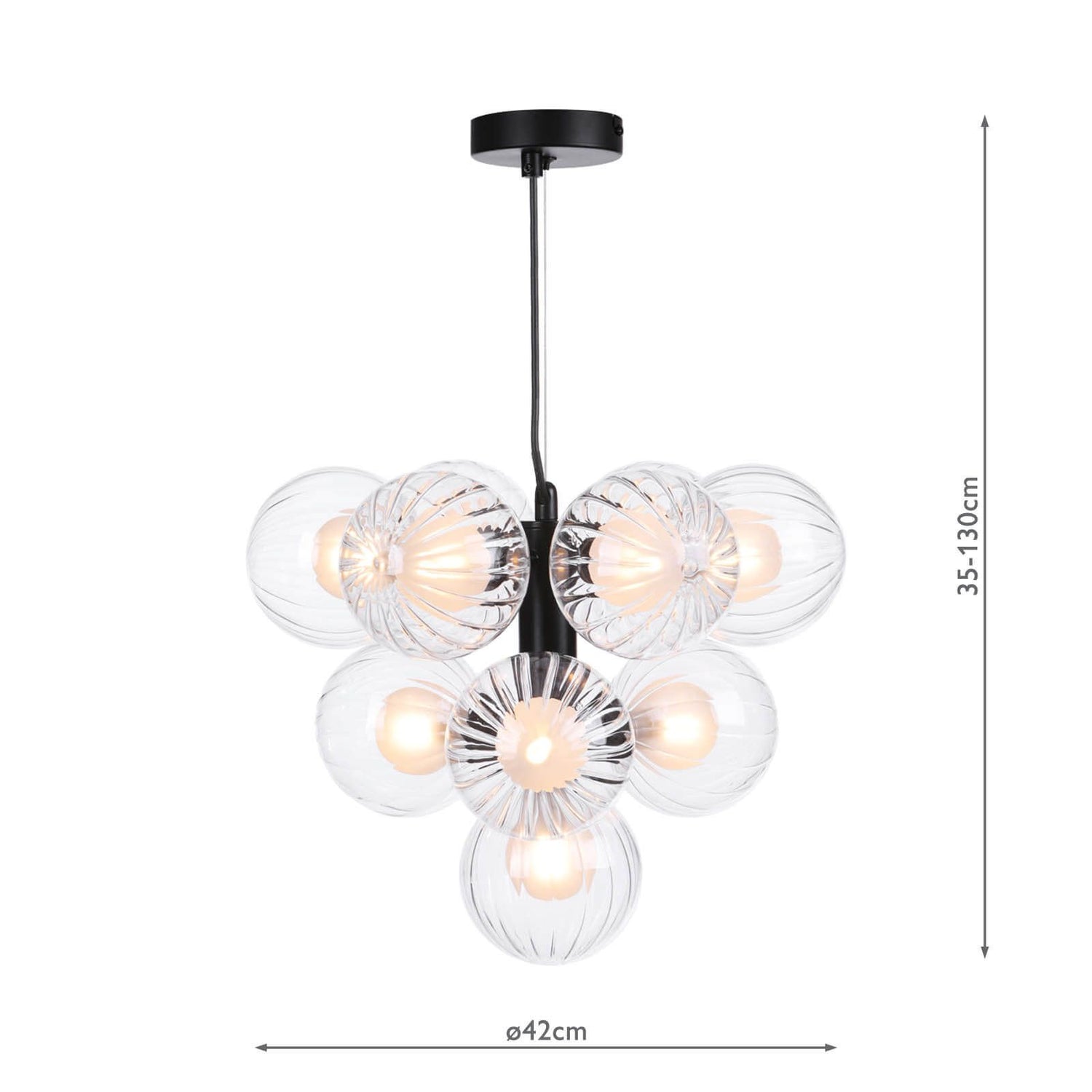 Vine 10 Light Pendant Satin Black With Clear/Opal Glass
