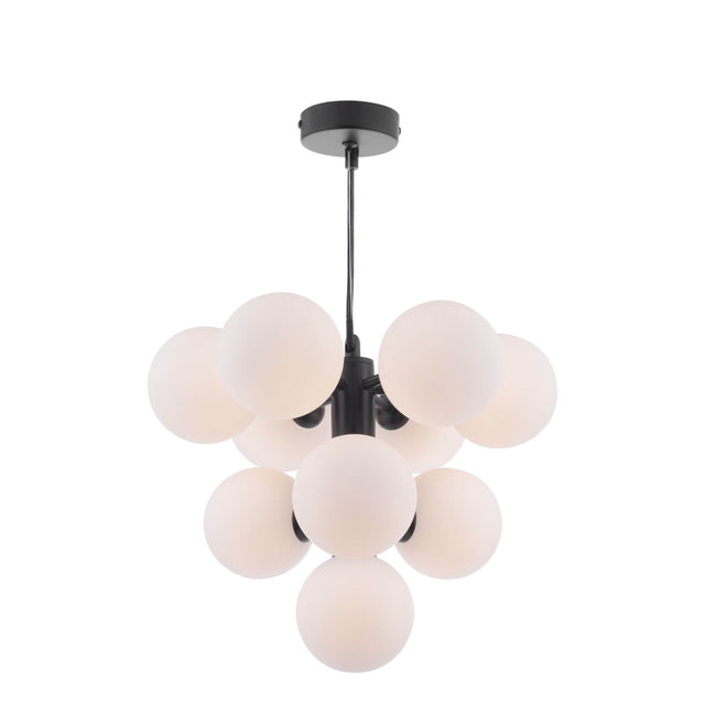 Vine 10 Light Pendant Satin Black With Opal Glass