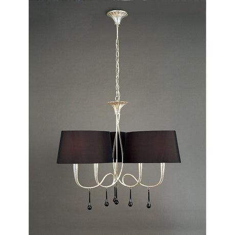 Paola 3-Arm Pendant Light with Black Shades and Glass Accents in Silver Finish
