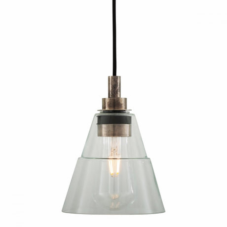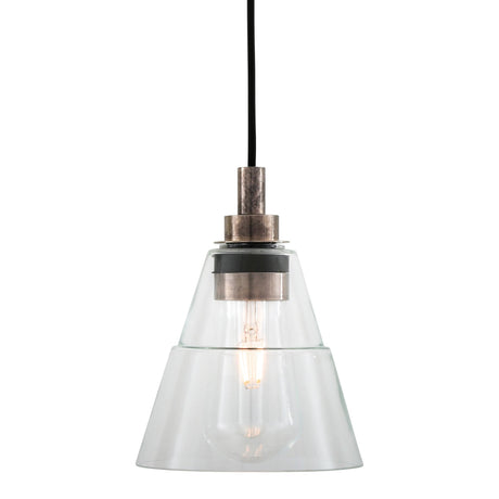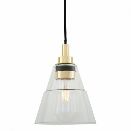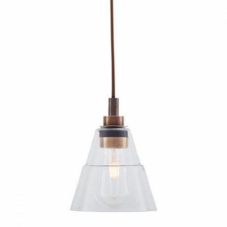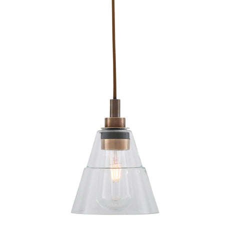 Elegant Clear Glass Cone Pendant Light with Antique Brass Finish