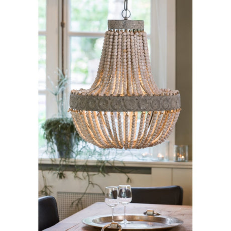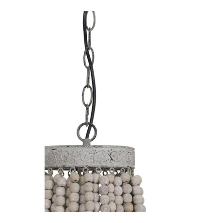 Rustic Luna Pendant Lamp with Beaded Design in Antique White - D52x61.5cm