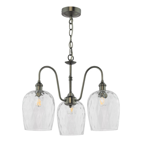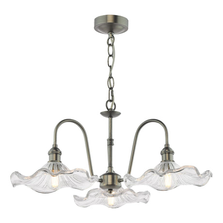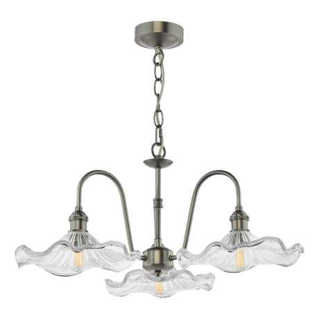 Hadano 3 Light Pendant Antique Chrome and Glass