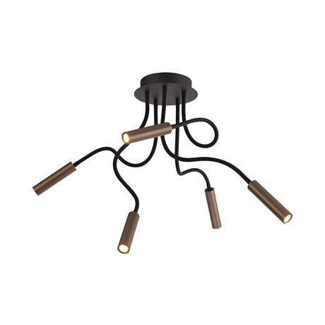Modern Black and Copper Adjustable 3-Arm LED Ceiling Light with Dimmable Warm Glow
