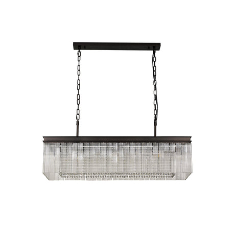 £11500 GBPUnit price /UnavailableIn stock (1000 units)Sleek 12-Light Rectangular Pendant in Matte Black with Crystal Sand Artistic Glass