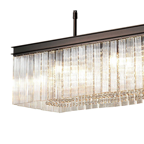 £50400 GBPUnit price /UnavailableIn stock (1000 units)Elegant 8-Light Rectangular Pendant in Matte Black with Crystal Sand Glass