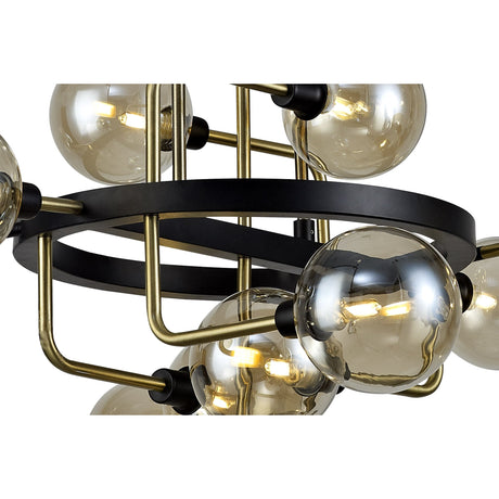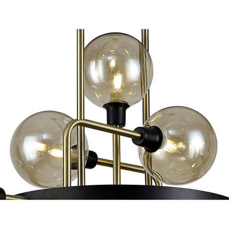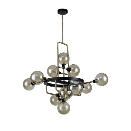 Chic Modern Pendant, 12-Light, Black/Brass with Cognac Glass