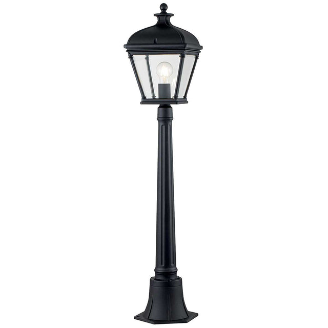 The Bayview has a classical romantic Georgian elegance, that illuminates any exterior with a crisp stylish presence. This 1Lt Medium Pillar Lantern is a sophisticated design constructed from Aluminium, with clear bevelled Glass, finished in black and IP44 rated.