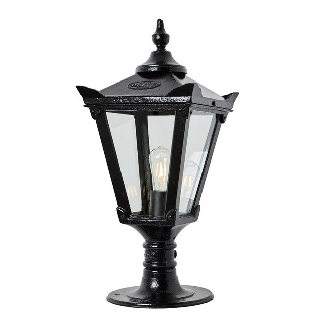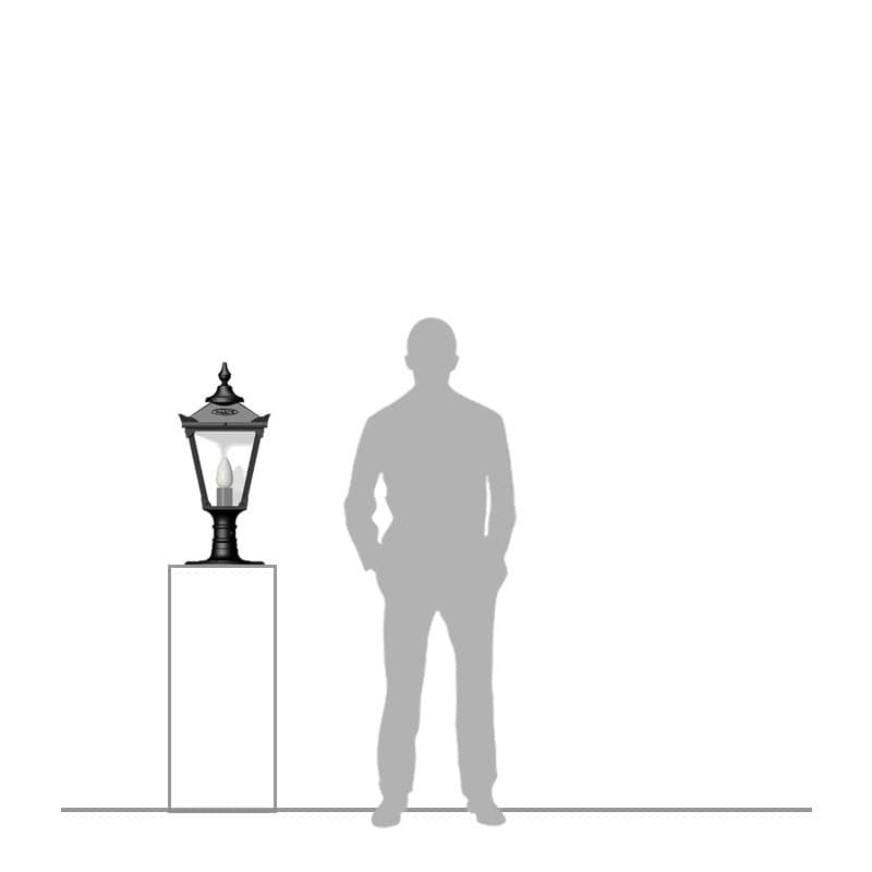 Victorian traditional cast iron pier light This classic pier light is one of our best sellers and will bring an instant charm to your entrance piers. It is designed to sit on top of flat pier tops such as entrance piers or patio walls. The cast iron mounting disc for this pier light has a diameter of 0.28m. For piers narrower than 0.28m please check out either the H53 or H54 in this range.