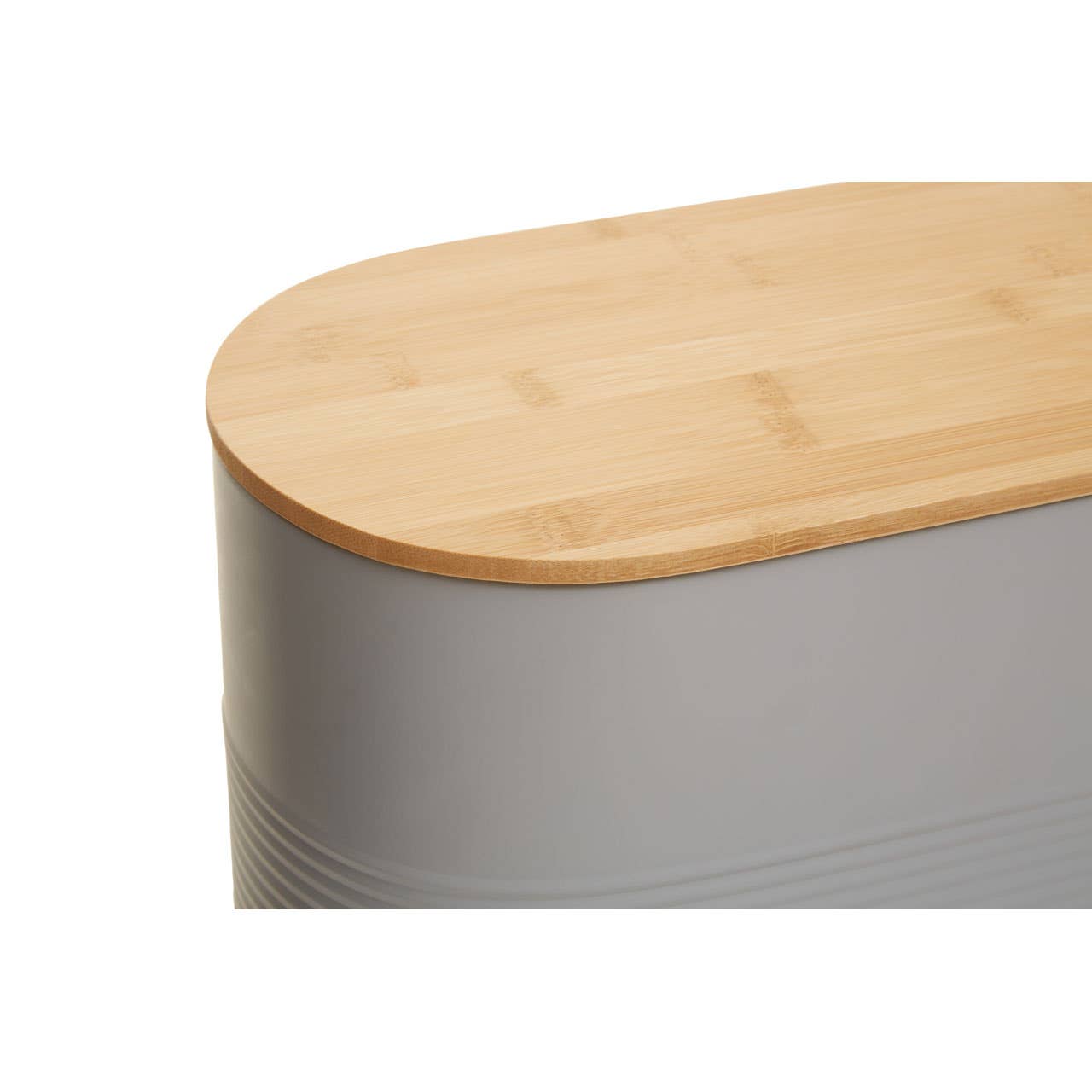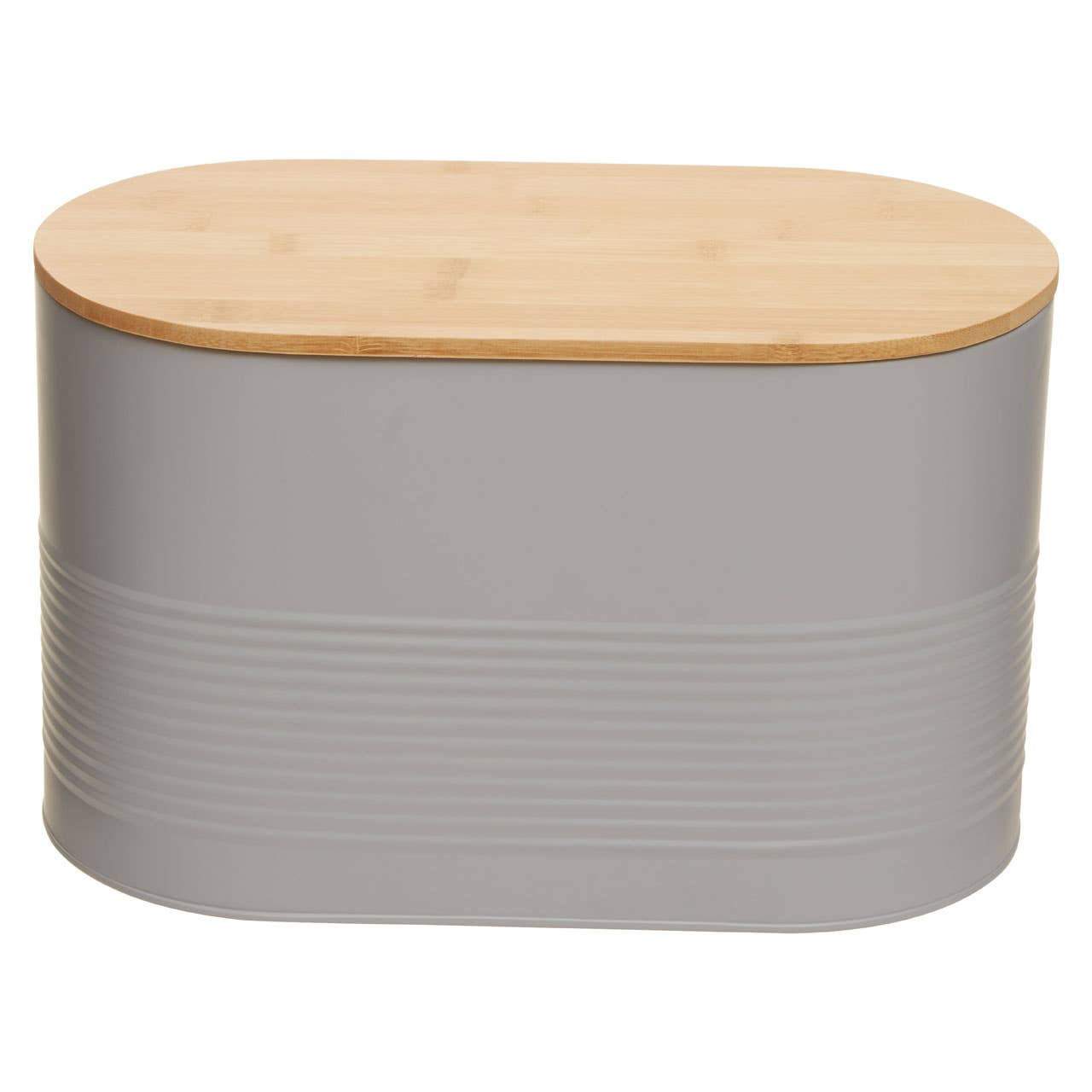 "The Alton Bread Bin adds a modern touch into a kitchen space. The grey metal body is lightweight and durable, and the bamboo lid is sturdy, keeping bread fresh."