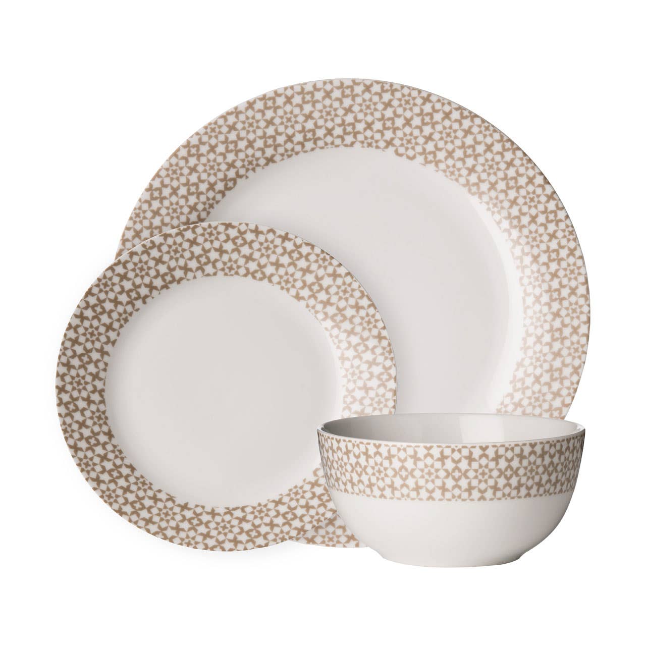 "Dine in style with our stylish 12 piece Avie Casablanca dinner set, that will make a wonderful addition to your tableware. Included in the set are 4 x dinner plates, 4 x side plates and 4 x bowl. Each piece is made from white porcelain ensuring durability, while the stylish natural colour shapes detail including stars and geometric designs, accentuate the contemporary style of the set. The smooth surface is easy to clean in warm soapy water making it ideal for everyday use. The set ensures you can enjoy starters, mains and desserts for four people. Adding a sense of occasion to your meal, the decoratively designed dinner set will become an everyday delight each time you sit down for a meal."