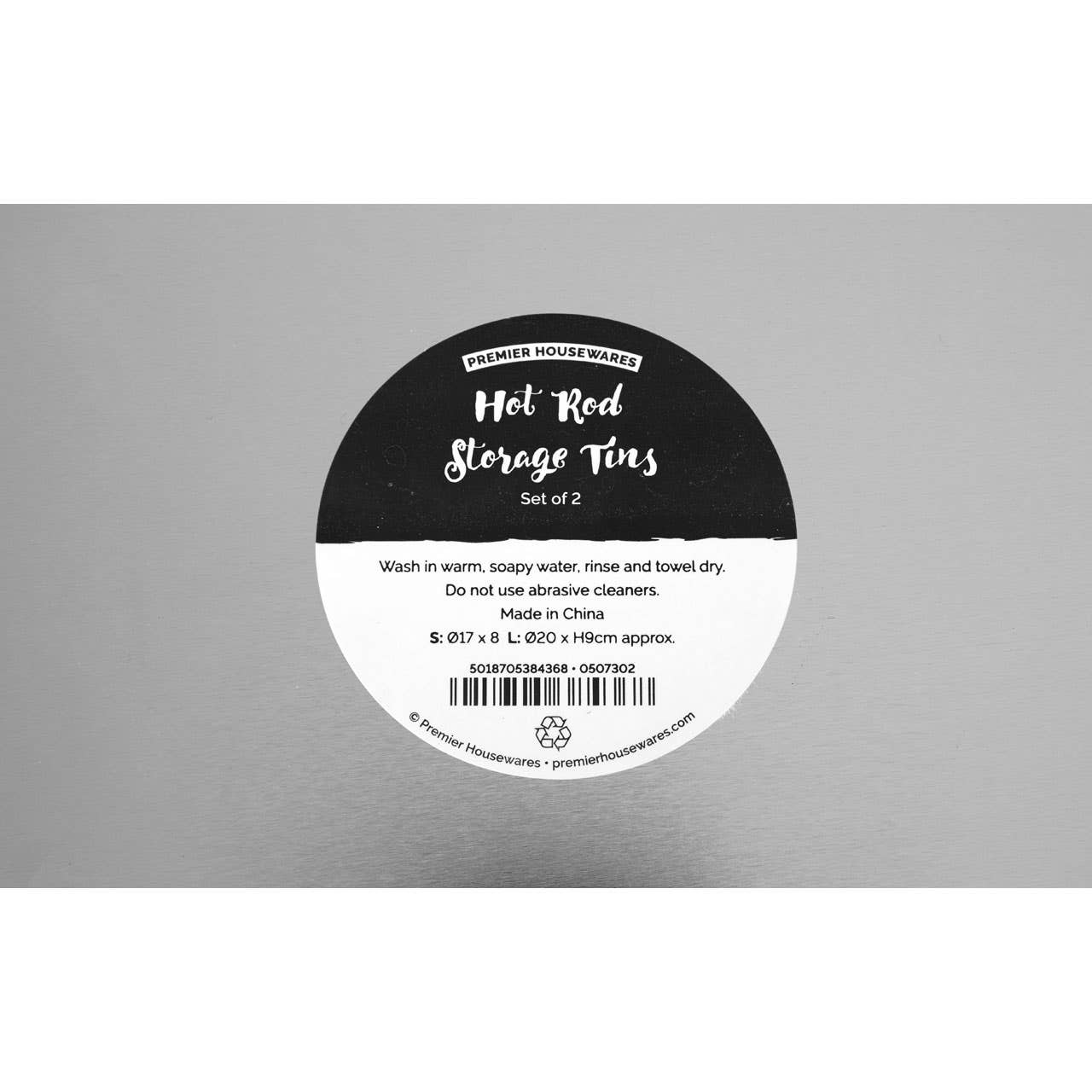 "Both tins are robust and durable and are suitable for storing small household objects such as sewing material or stationery. Their lids have We Are Open and The Old Barber Shop in advertising style lettering that gives them a vintage look. The large tin is decorated with a traditional red and white barber strip, with a contrasting black and white combination on the small version."