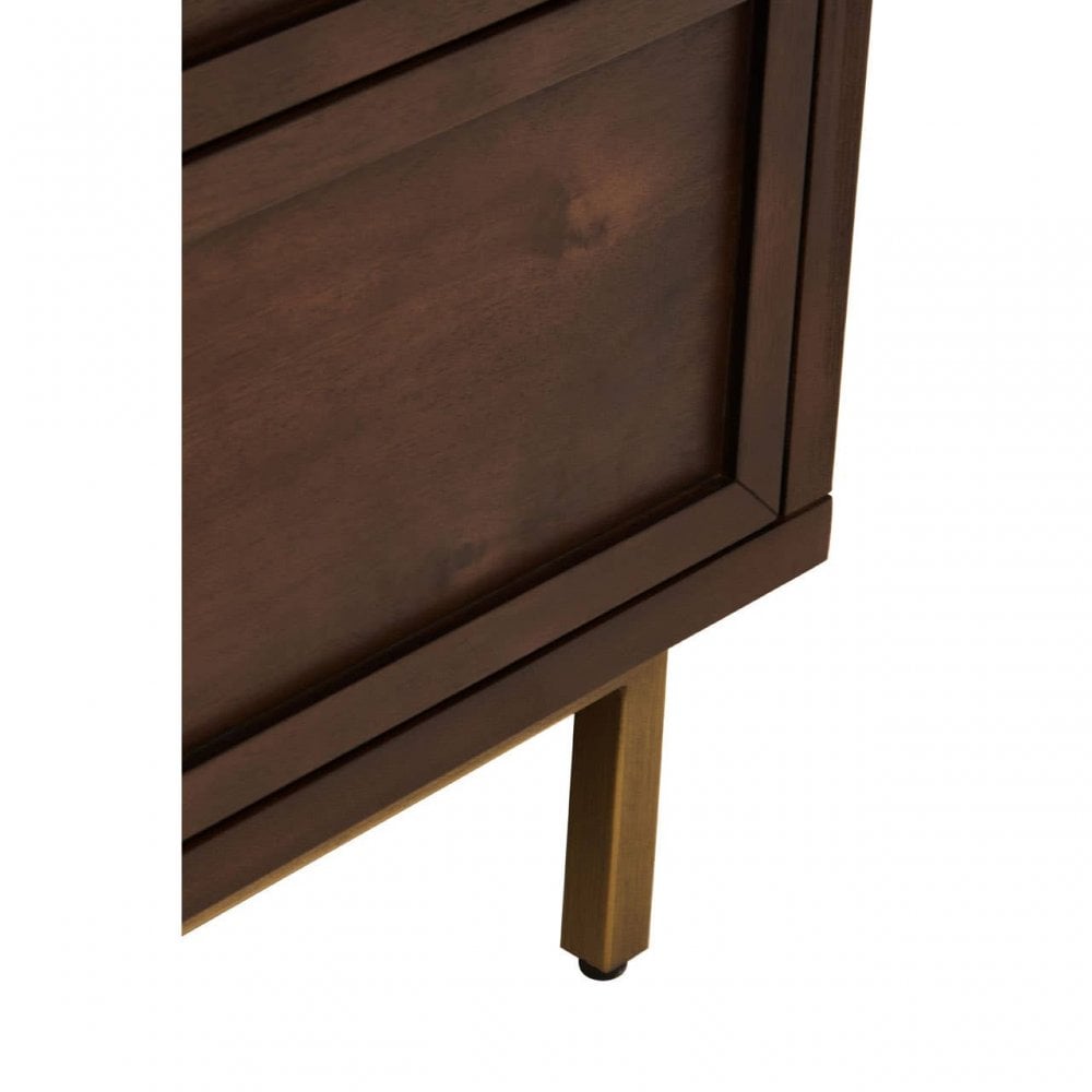 - This sideboard offers ample warmth with acacia veneer finish frame featuring a herringbone pattern in light and dark brown tones. Offering ample storage, the drawers and shelves are complemented with antique brass finish handles that coordinate with sleek legs enhancing luxe sophistication.