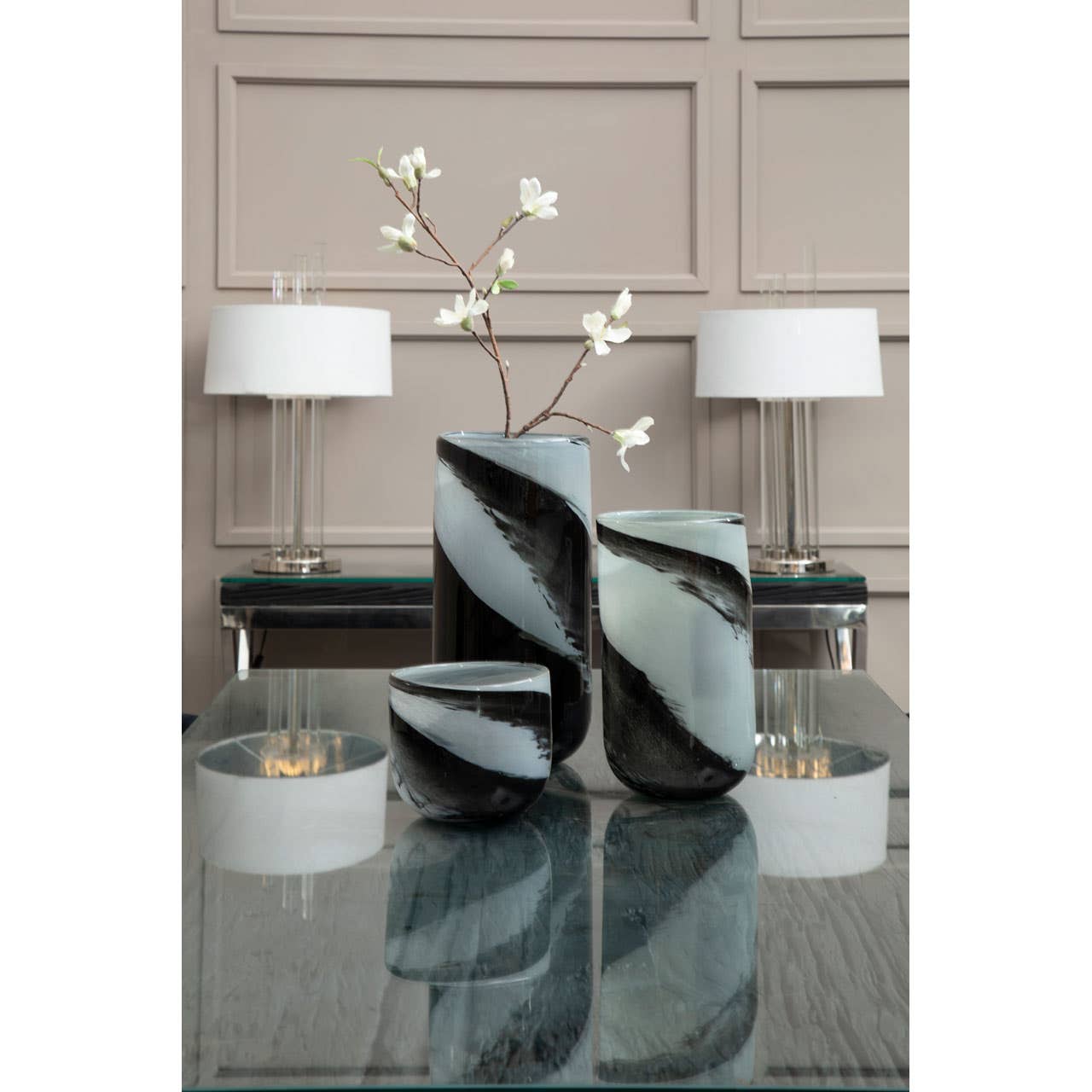 Abstract Grey and Black Glass Planter Carra is backordered and will ship as soon as it is back in stock.