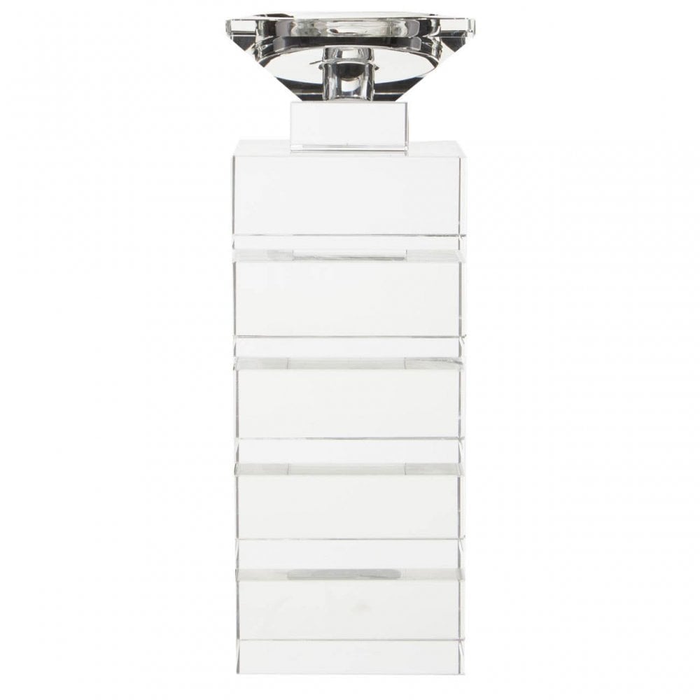 - Intricately designed to create a delicate ambience with its geometric aesthetics, this small candle holder will lend artistic character to the mantle. Made from sturdy glass, this freestanding candle holder in a clear finish is a delightful accessory for the home.