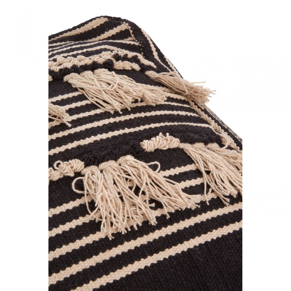- Feature Summary: Boho style, Natural coloured tassels, Black fabric upholstery, Textured accent piece