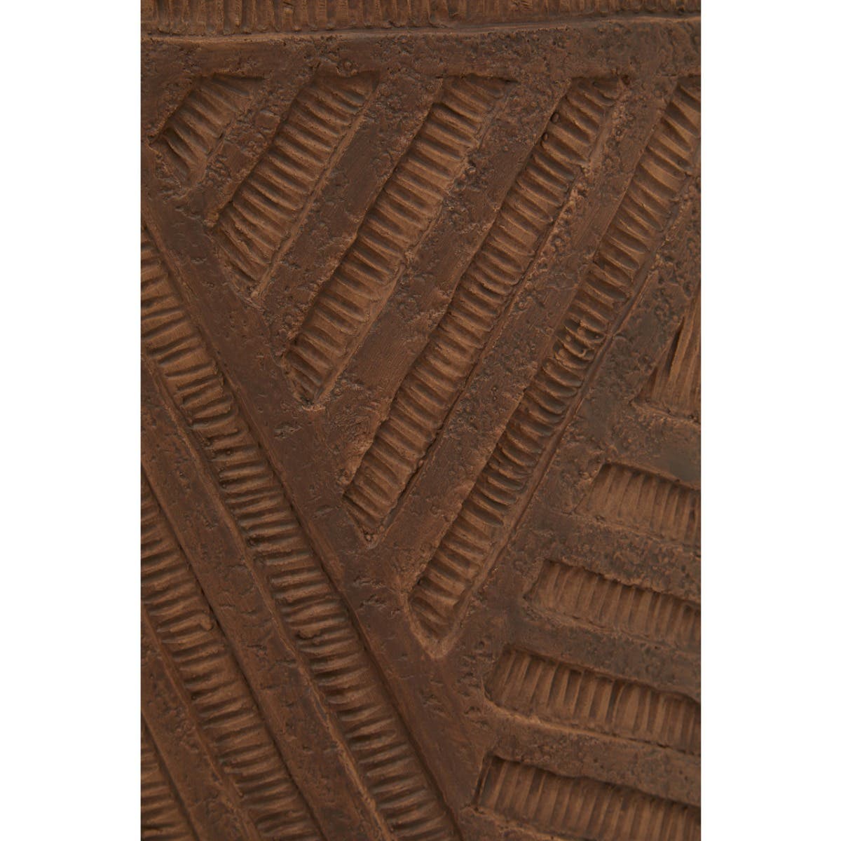 Made from sturdy magnesia fibreglass in a brown finish, this planter features asymmetric engraving and a hand painted geometric motif accented in earthy hues. The contemporary planter with abstract lines is designed to hold plants and flowers in the home or office.