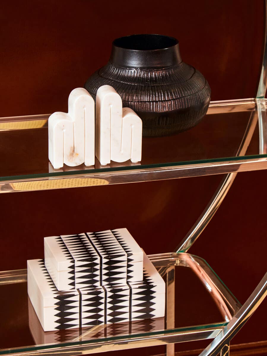 The decorative Black Deomali Vase has a spherical profile which will add an artisanal element to your home. Its etched linear design has been handcrafted onto quality aluminium which may feature slight variations making each piece totally unique. Use to display dried flowers and pampas grass. Group with the large size in Gold on a sideboard or console table, the contrasting tones and heights will create an eye catching display.