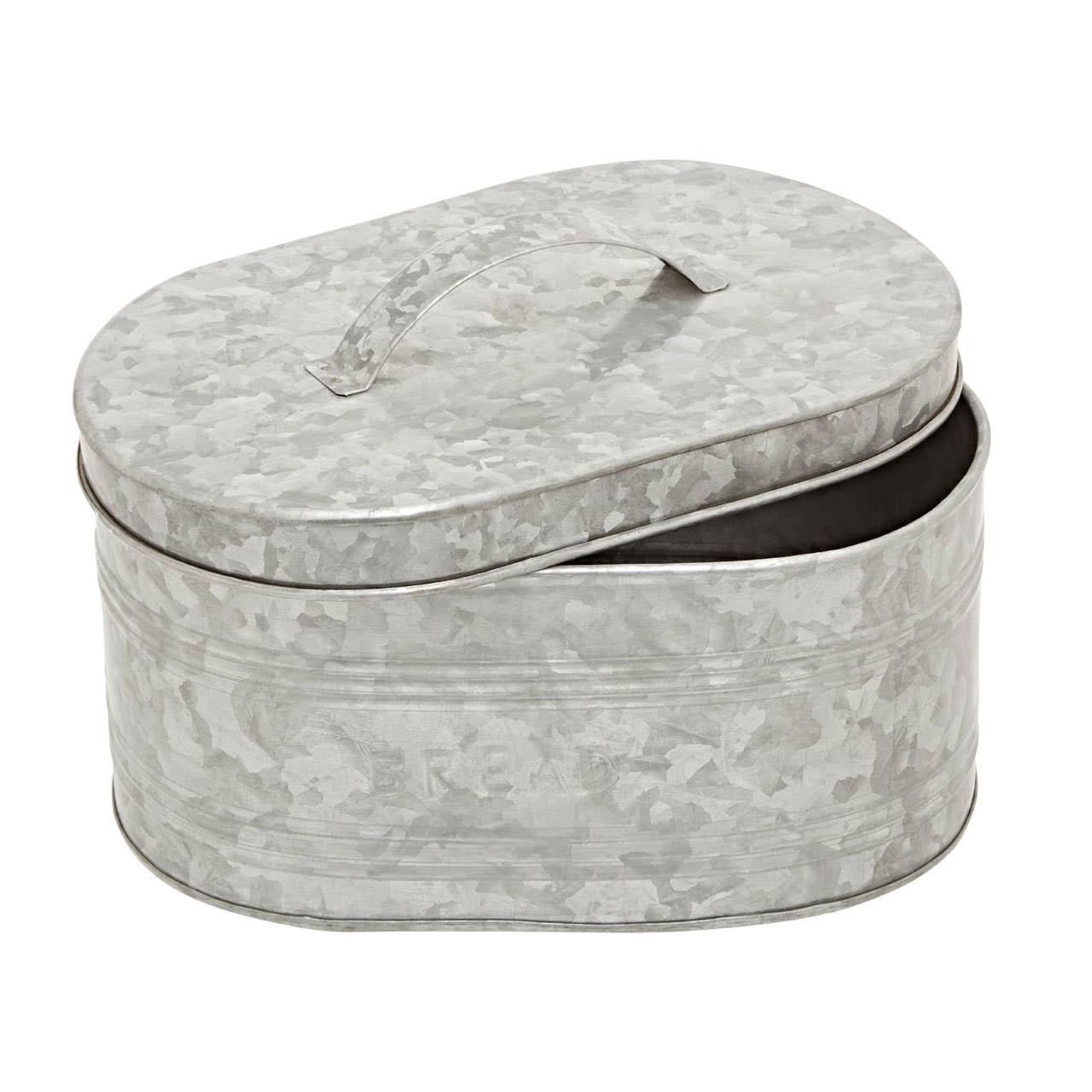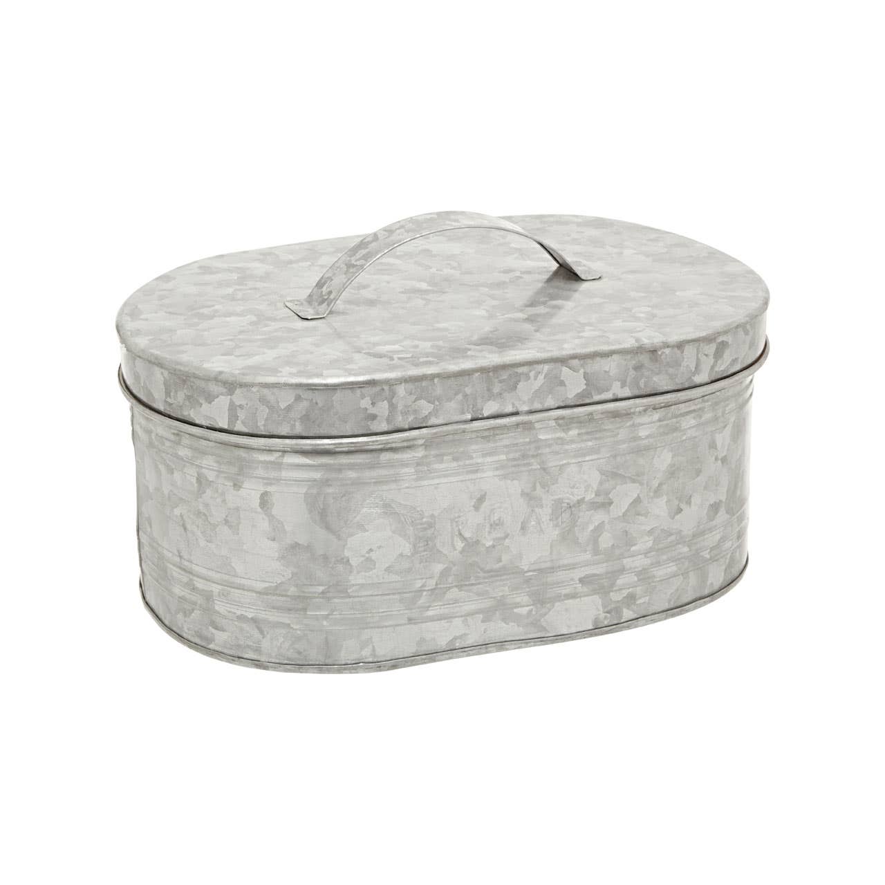 "This bread bin constructed from galvanized steel is timeless functional addition and serves a variety of uses for storage other than the bread bin. Featuring ample space for storage, and a lid paired with a handle, it is a blend of style and functionality."