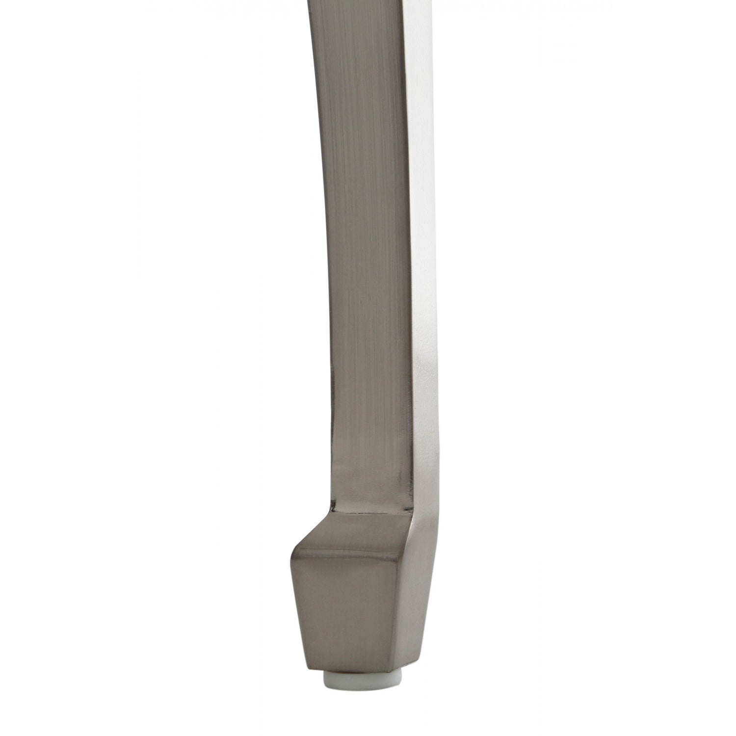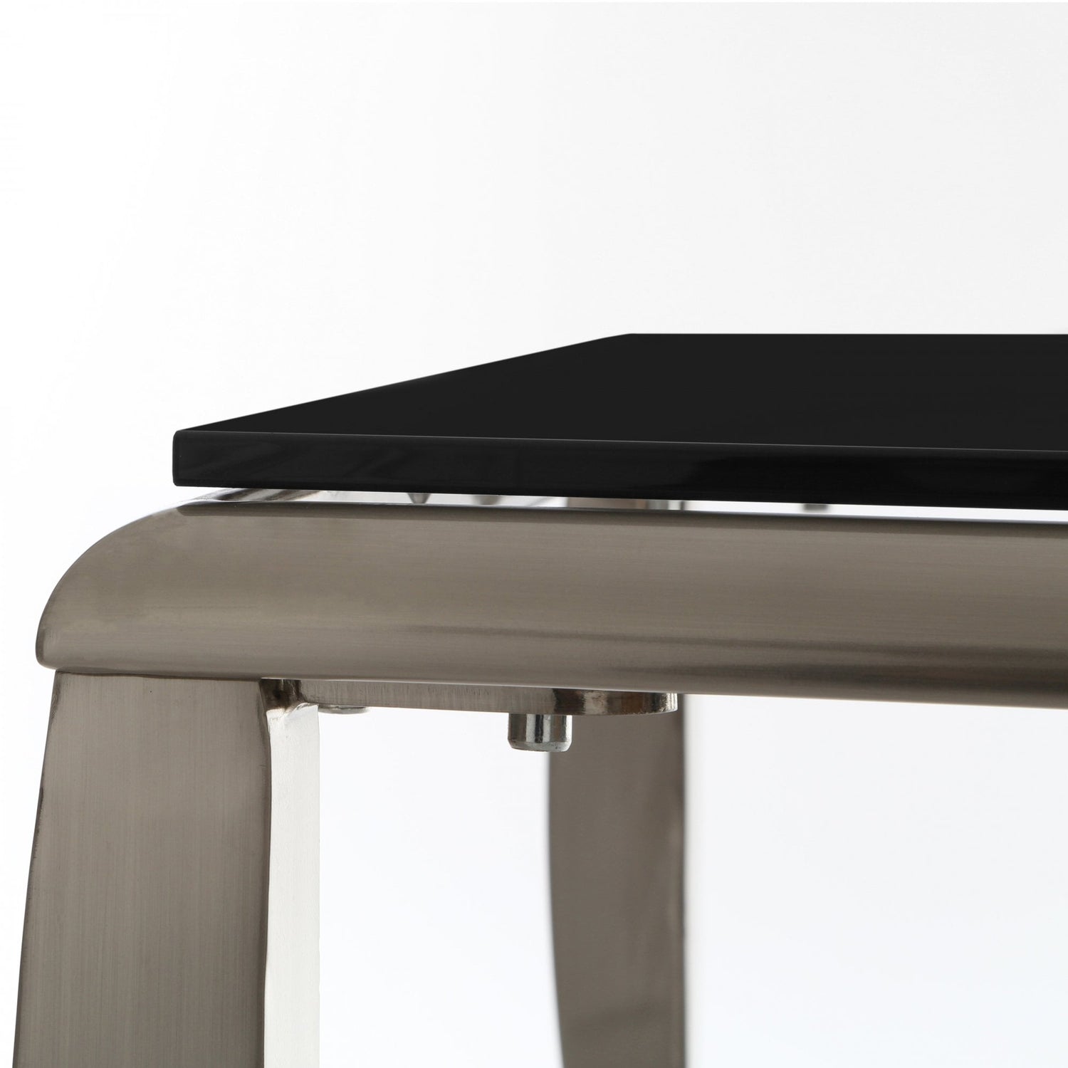 Giving the traditional end table a contemporary twist, the chic black glass top contrasts with the contours of the elegant nickel plated legs for a stylish and practical table that will enhance your room. The robust black tempered glass is smooth and sleek making it perfect for placing plants, lamps, photos, flowers and other decorative ornaments on. The metal legs are finished with nickel plating for a sheen look that complements the black glass. The sturdy legs have a beautiful bow curve that accentuates the style of the table. A functional and fashionable way to create extra surface space, the elegant end table will complement most decors.
