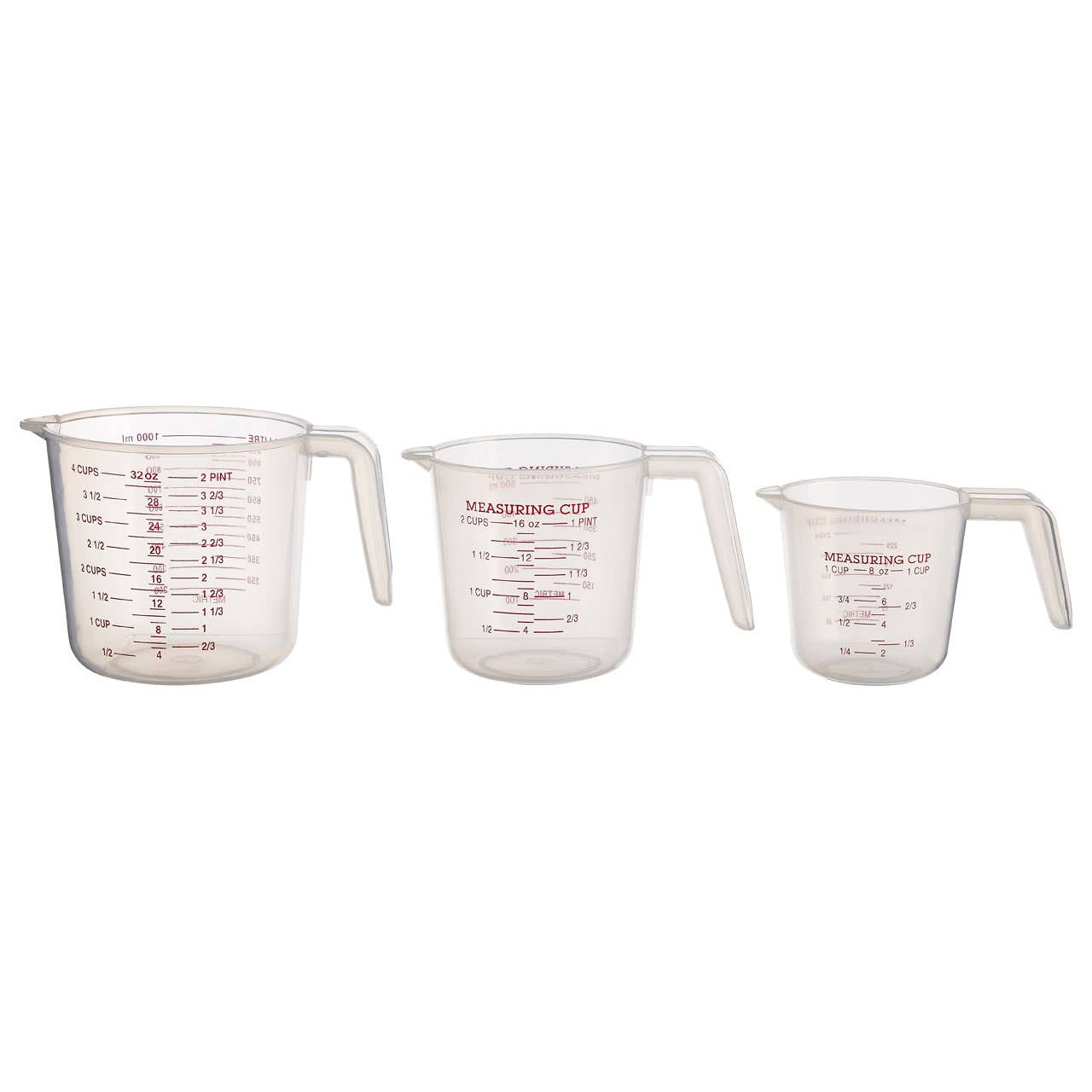 The Guluna clear seat of three plastic measuring cups are a kitchen essential. The three different sizes means that all your cooking and baking needs are covered.