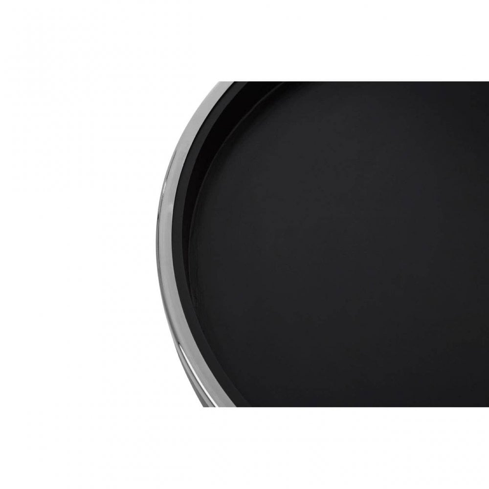 - This pair of tables has a robust wooden top with raised sides which gives the design a lifted edge. Stylish and poised, each table has sleek angular legs with pointed steel tips which contrasts the dark tabletops.