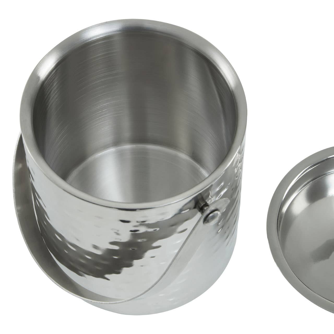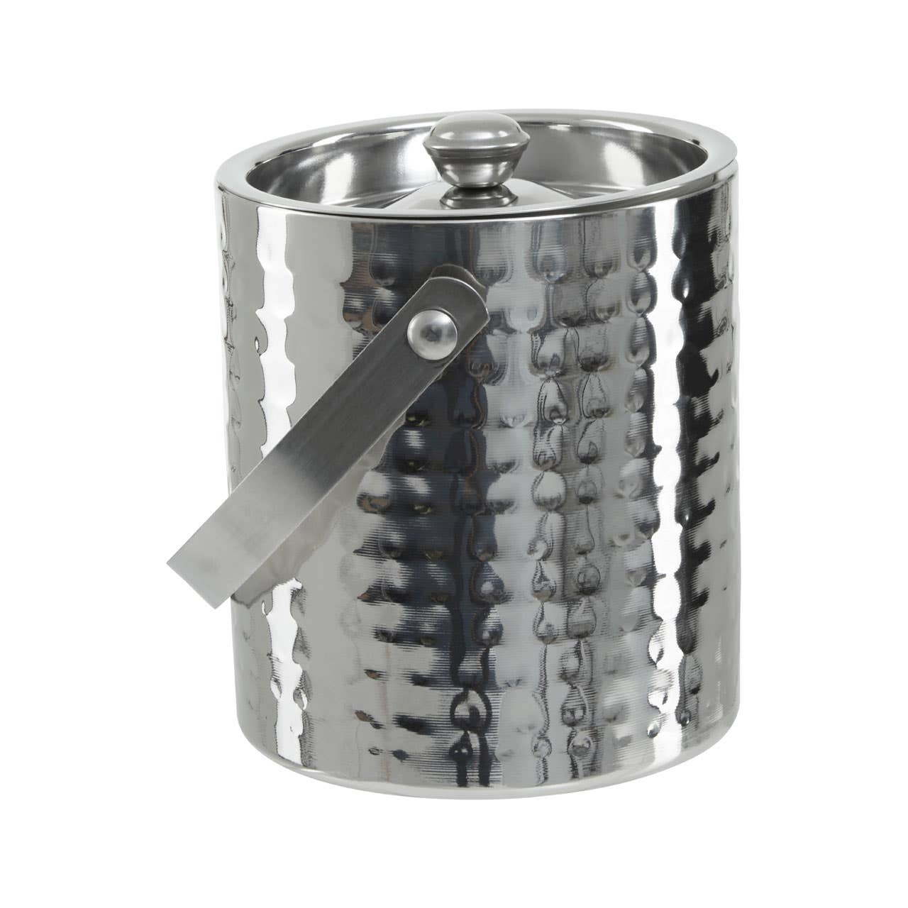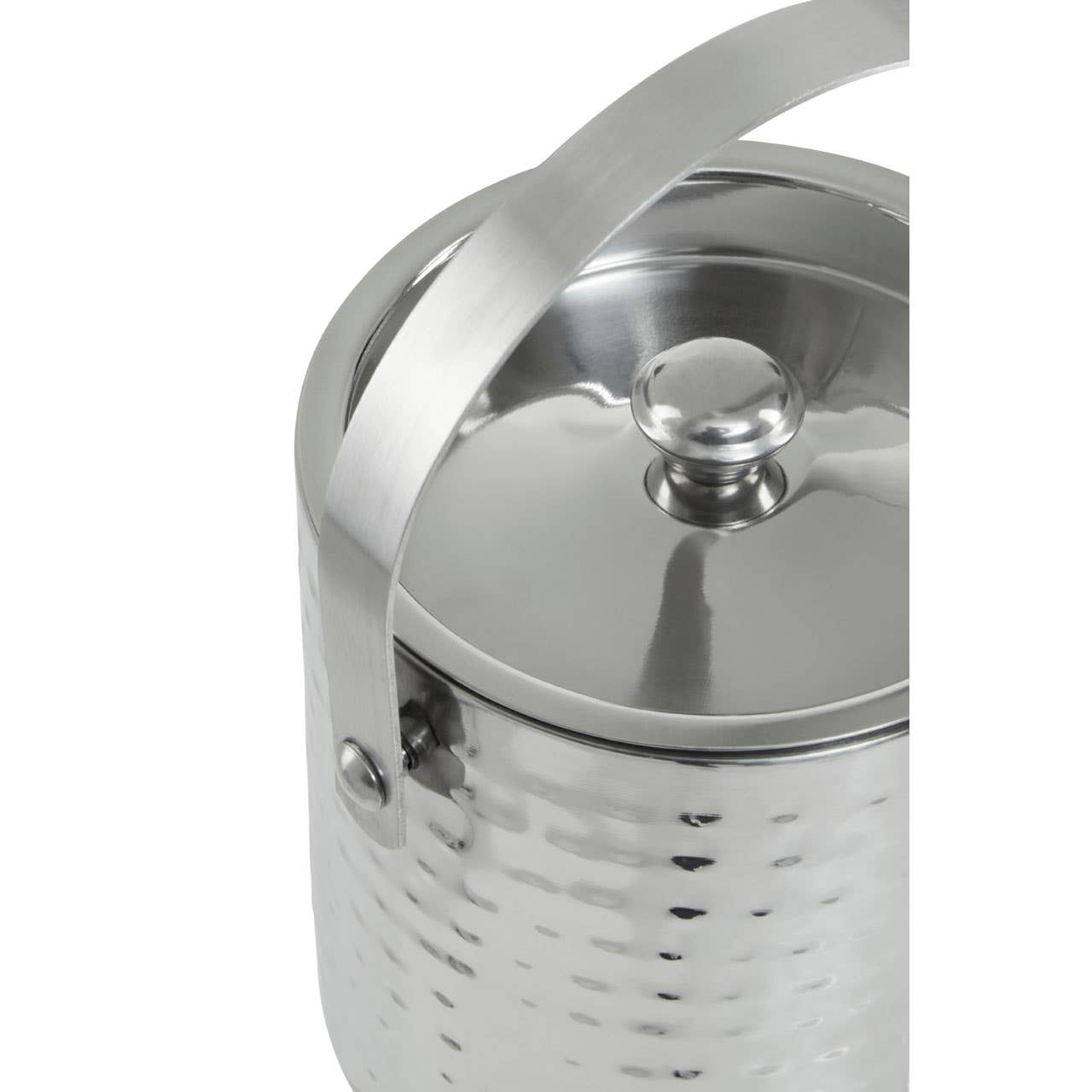 "Be the perfect host with the ice bucket by making sure all drinks best served chilled have ice close to hand. The hammered effect stainless steel design will add a stylish look while making sure that there is plenty of ice for drinks. A stainless steel lid will help to keep those cubes on ice that bit longer, and with a handle for ease of carrying, the ice bucket is practical and stylish for your entertaining needs."