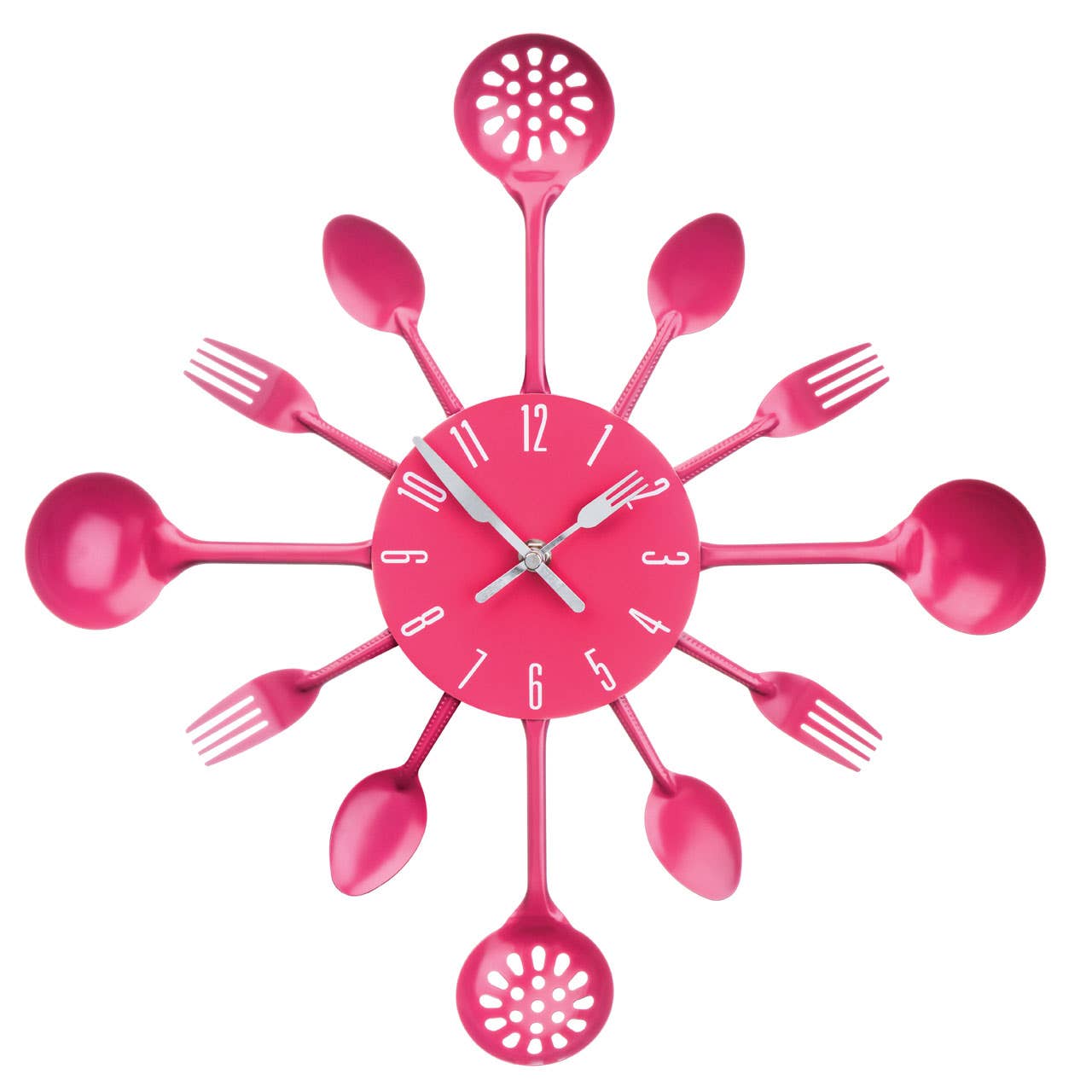 Vibrant Pink Kitchen Utensil Wall Clock is backordered and will ship as soon as it is back in stock.