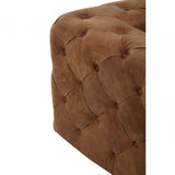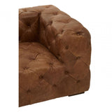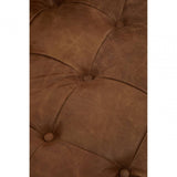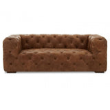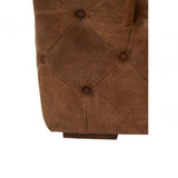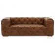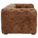 - The Hoxton three-seat sofa has an unmistakable stately presence. Beautifully crafted vintage brown leather is tufted, creating the iconic dimpling.