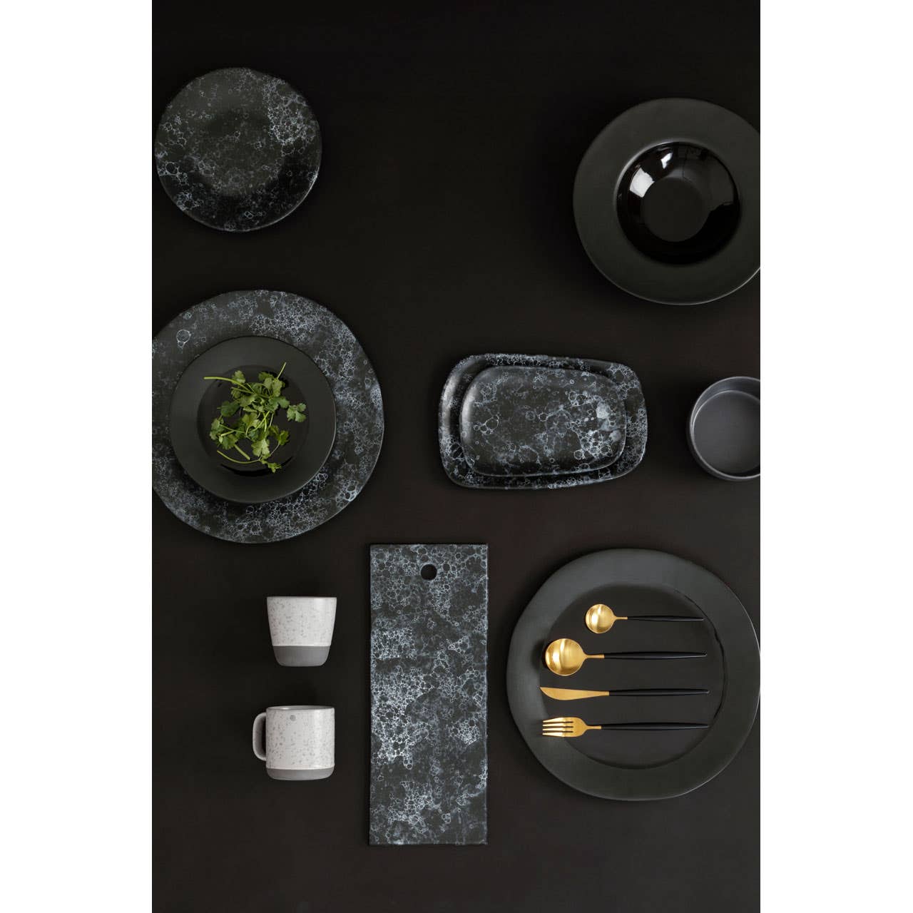 "This pizza plate is made from strong stoneware, boasts a wide rim and a features a shallow, recessed centre. It features a marble effect, with white veining creating a monochrome effect against the black. The uneven rim adds to the visual interest. Coordinate it with a side plate from the Hygge range."