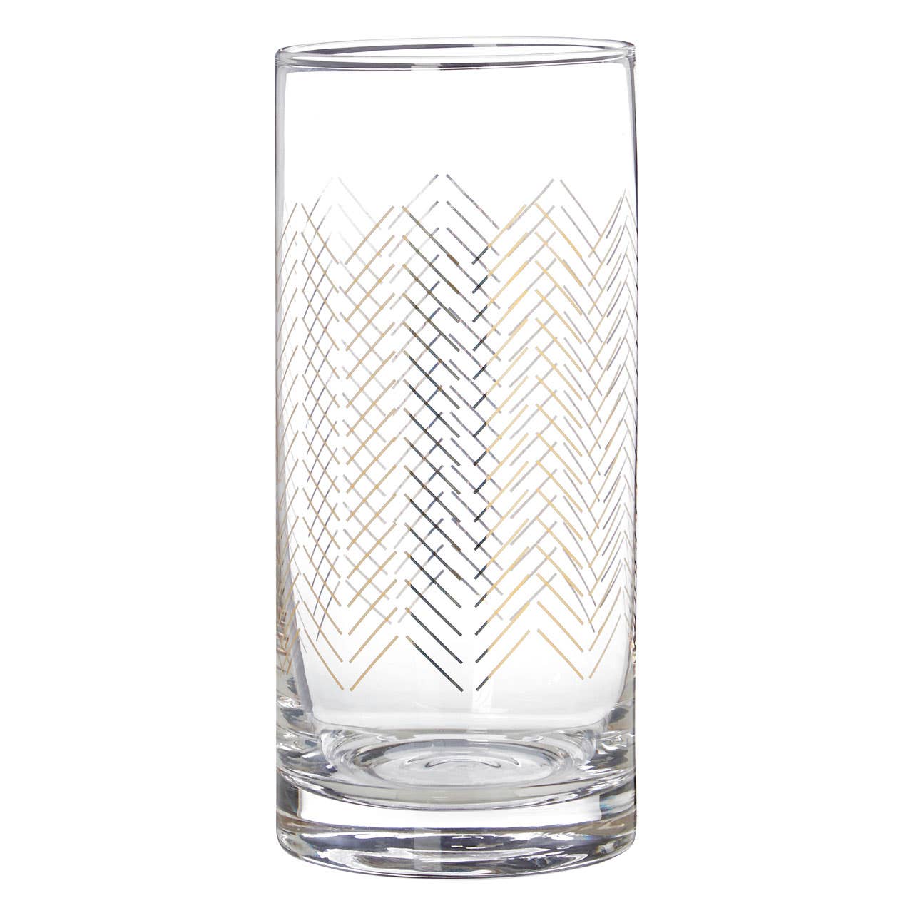 Art Deco Jazz Gold Wave Highball Glass Set of 4