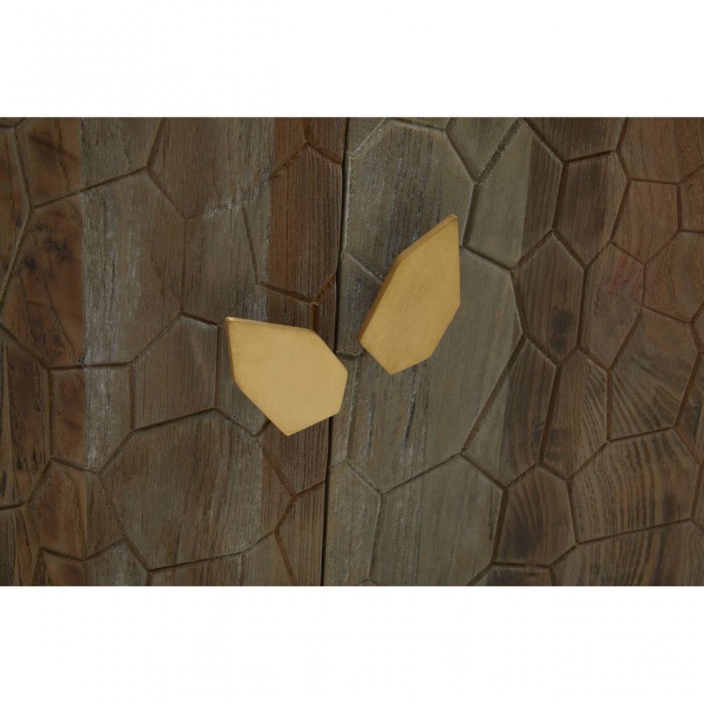 - The Malay sideboard is expertly handcrafted from recycled elm wood and features a carved effect of abstract geometric patterns on the doors. Black finish wooden legs contrast the natural accent of the understated top.