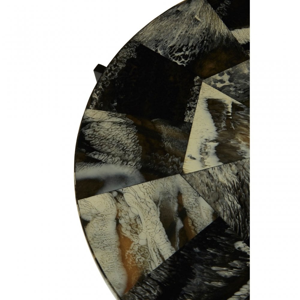 - Features: Chic accent table, Tiled resin top, Minimal black iron legs, Intersecting lines