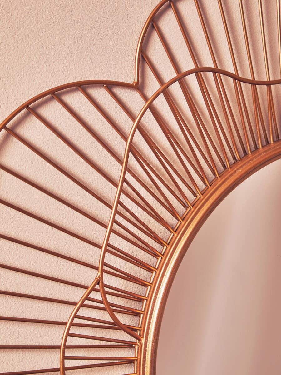 The striking flower design consists of 3D metal petals forming a frame around a circular mirror. The gold frame gives a luxurious feel and the blossoming effect of the mirror adds softness to any modern décor.