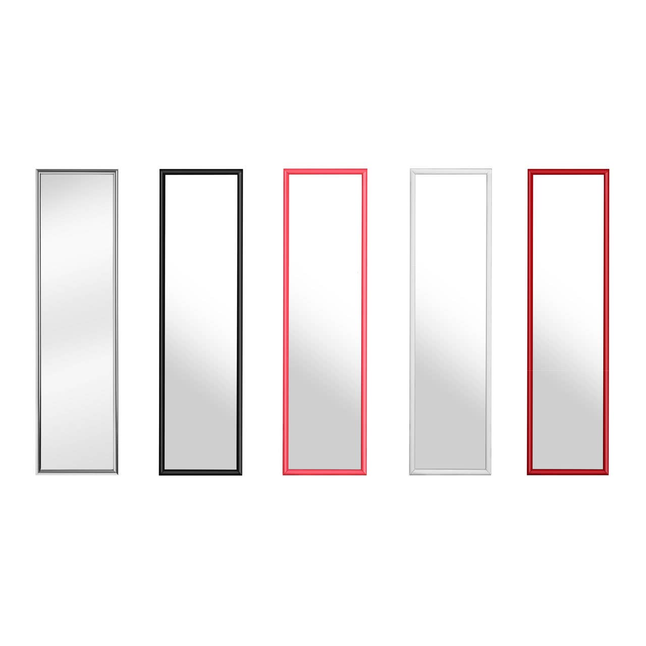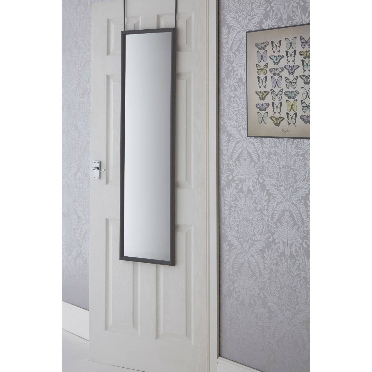 Its rectangular frame is made from strong and durable plastic and has a slim, understated design and a cool grey finish. A pair of black hooks extends from its top section and is designed to fit over an interior door. This feature means there is no damage to wood from screws or nails, and the mirror can be easily and quickly moved to another location if required.