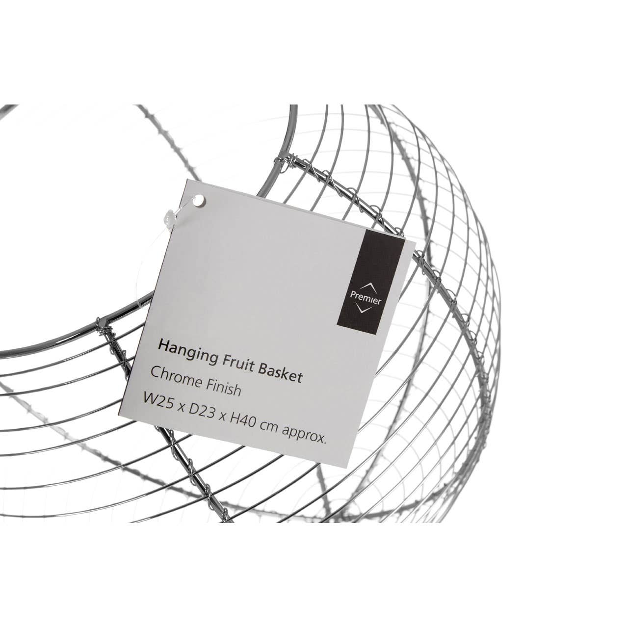 "A striking centrepiece on your table or countertop, the chic hanging fruit basket, with chrome finish, will help to keep your favourite fruit organised and tidy. The metal wire design ensures strength sturdiness and style, which is then accentuated further by the shiny chrome finish. The basket has ample space for storing apples, oranges, pears and more. Ideal for keeping fruit close to hand, the stylish hanging basket will make a great feature in your home."