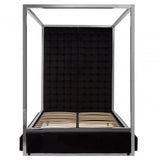 Contemporary Black Velvet Canopy Bed with Silver Accents