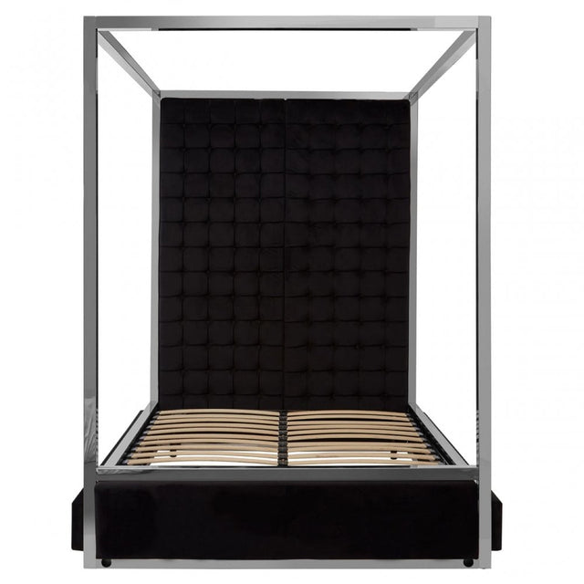 - Feature Summary: Contemporary canopy design, Black velvet, Silver finish stainless steel, Statement sleeping