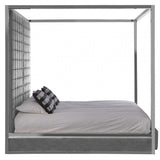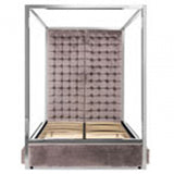 Contemporary Grey Velvet Canopy Bed with Silver Stainless Steel Frame