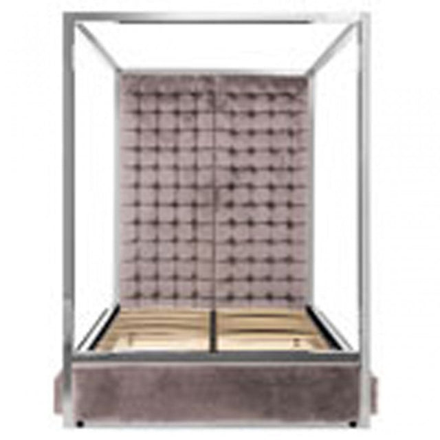 - Feature Summary: Contemporary canopy design, Grey velvet, Silver finish stainless steel, Statement sleeping