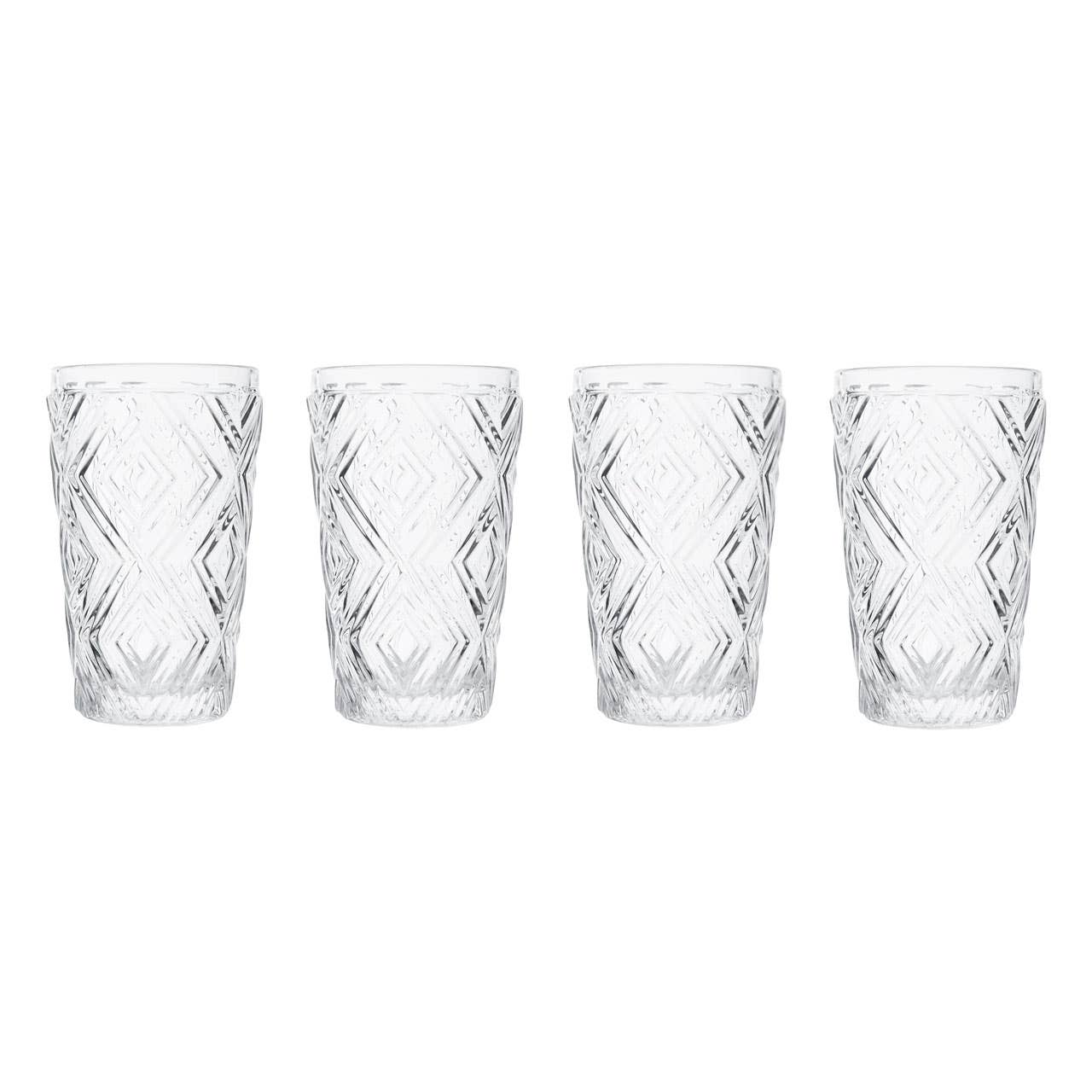 Vintage-Inspired Embossed Highball Glass Set of Four