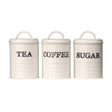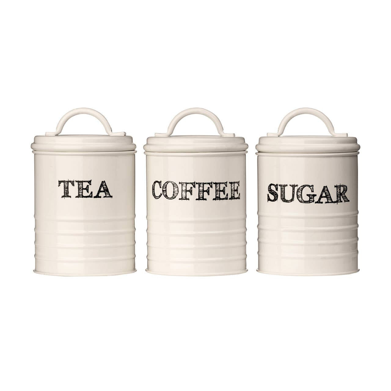 A charming addition in all kitchens, our set of sketch tea, coffee and sugar canisters will help to keep your countertops organised and tidy. Each canister is made from durable metal and given a fresh cream finish that will complement all decors.