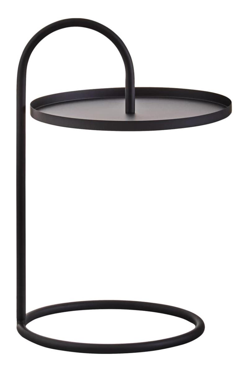 This side table has a sleek and minimalist black iron frame which gently curves to hang the rounded black iron top which features raised sides. The round base adds stability and further elevates the modern look.