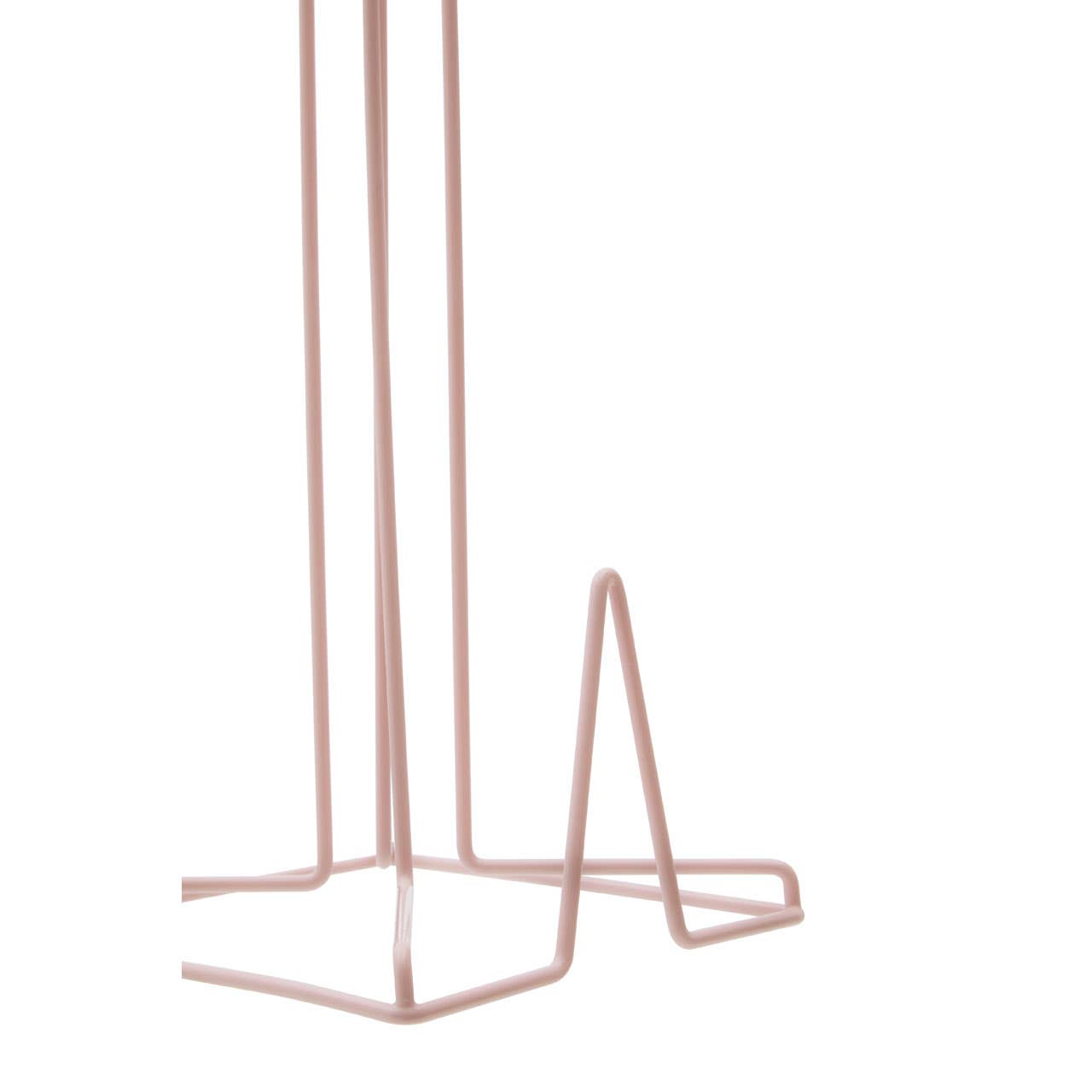 "The wire frame of the Vertex kitchen roll holder forms a square base that provides stability. From the base, four lines of pink plated steel rise vertically; ready to hold a roll of kitchen paper securely in place. The geometric lines flow seamlessly, interrupted at the front by a rising triangle that helps to guide the paper from the roll."