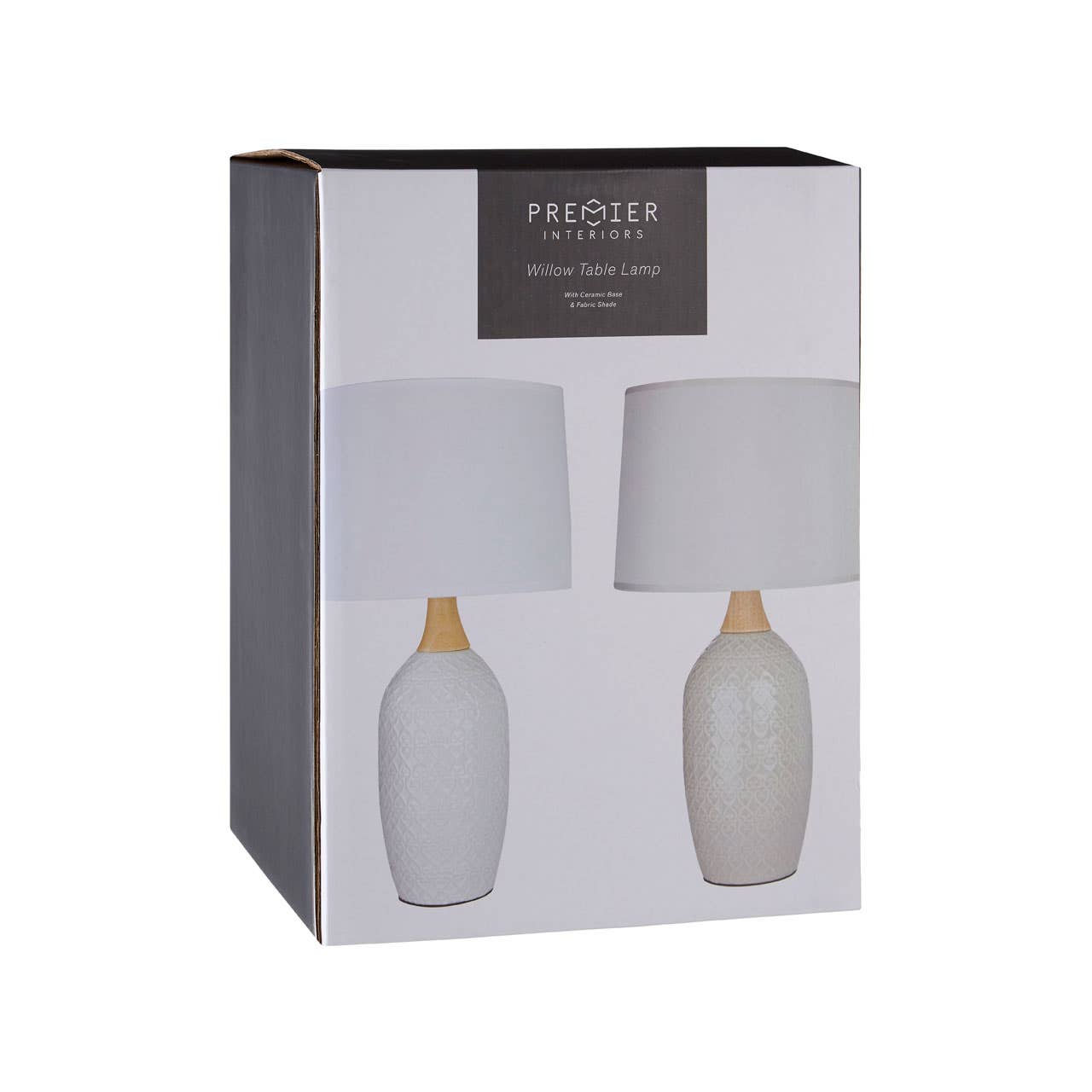 Willow Heart-Embossed Ceramic Table Lamp with Wood Accent