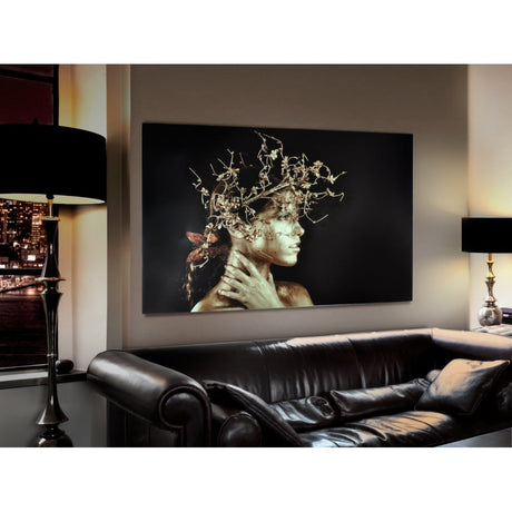 Title: Sleek Matt Black and Gold Abstract Glass Art, 80x120cm
