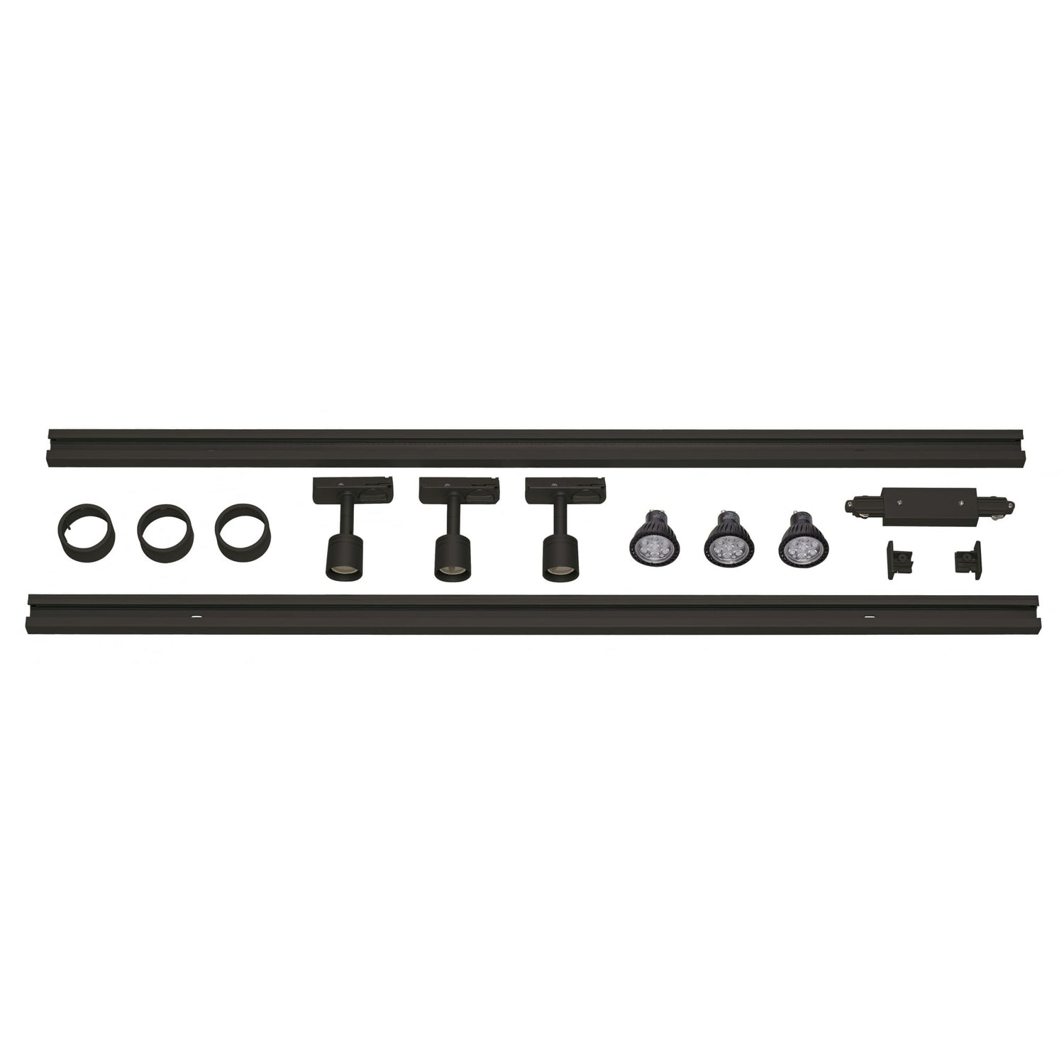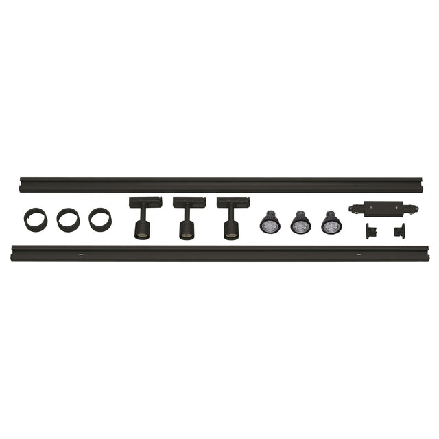 Sleek Black 2M Track Lighting Kit with Trio of LED Spotlights